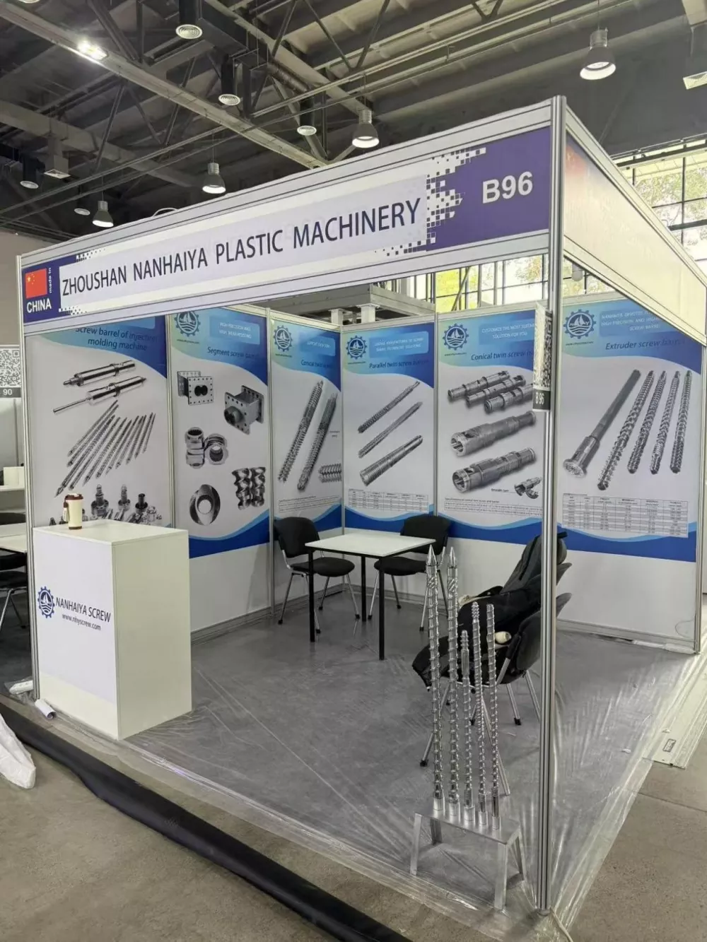 2025 සැප්තැම්බර් 21 සිට 23 දක්වා, Zhoushan Nanhaiya Plastic Machinery Co., Ltd. එහි ප්‍රදර්ශන කුටියේ පරිමාණය කරන ලද ඉස්කුරුප්පු සහ බැරල් ආකෘති ප්‍රදර්ශනය කළේය. එහි ප්‍රමුඛතම ඇඳුම්-ප්‍රතිරෝධී තාක්‍ෂණය සහ අභිරුචි කළ විසඳුම් සමඟින්, නිෂ්පාදන ප්‍රදර්ශනයේ කැපී පෙනෙන අංගයක් බවට පත් වූ අතර, උස්බෙකිස්තානය සහ කසකස්තානය වැනි මධ්‍යම ආසියානු රටවලින් බොහෝ ගැනුම්කරුවන් ආකර්ෂණය කර ගත්තේය.